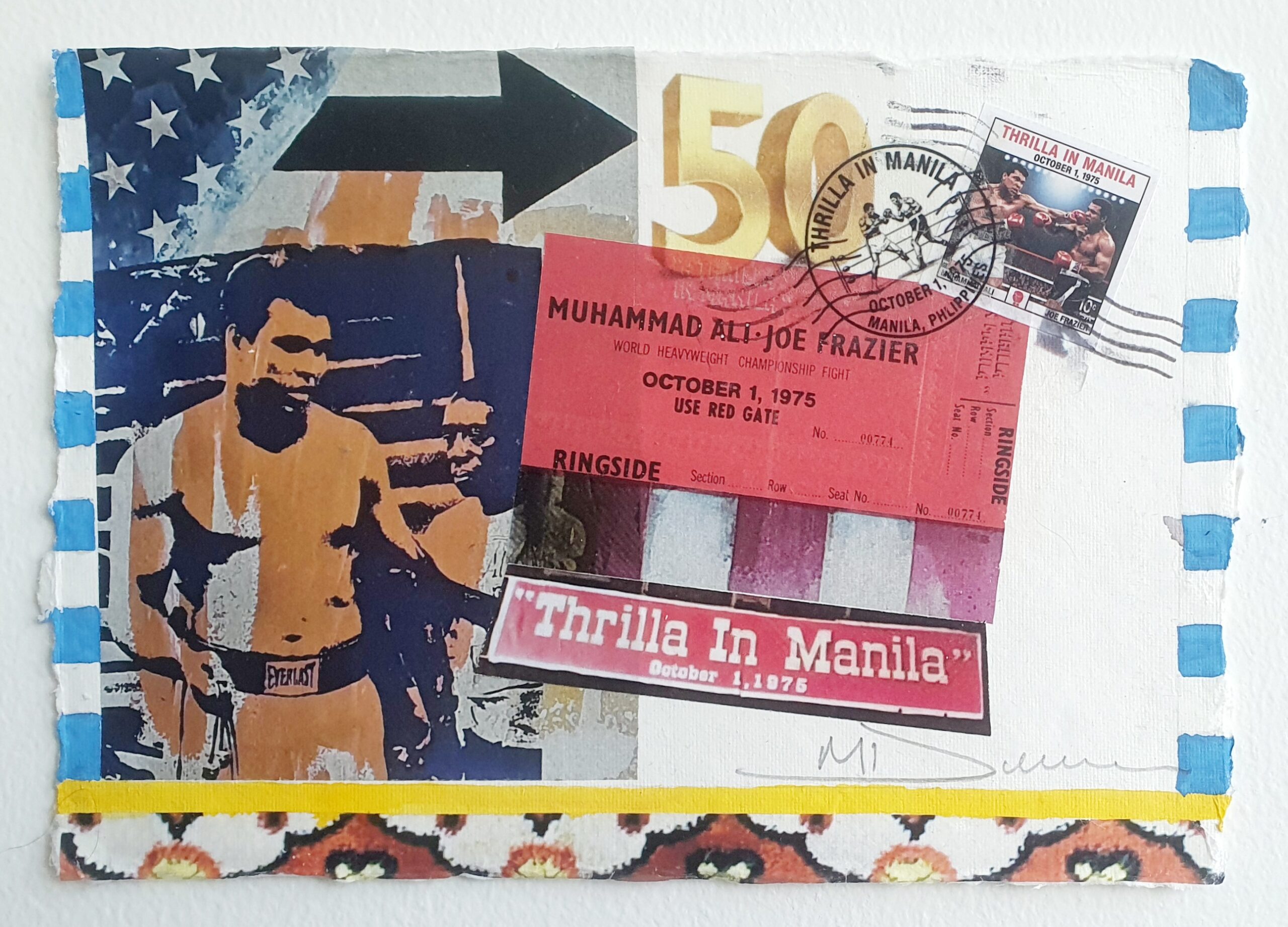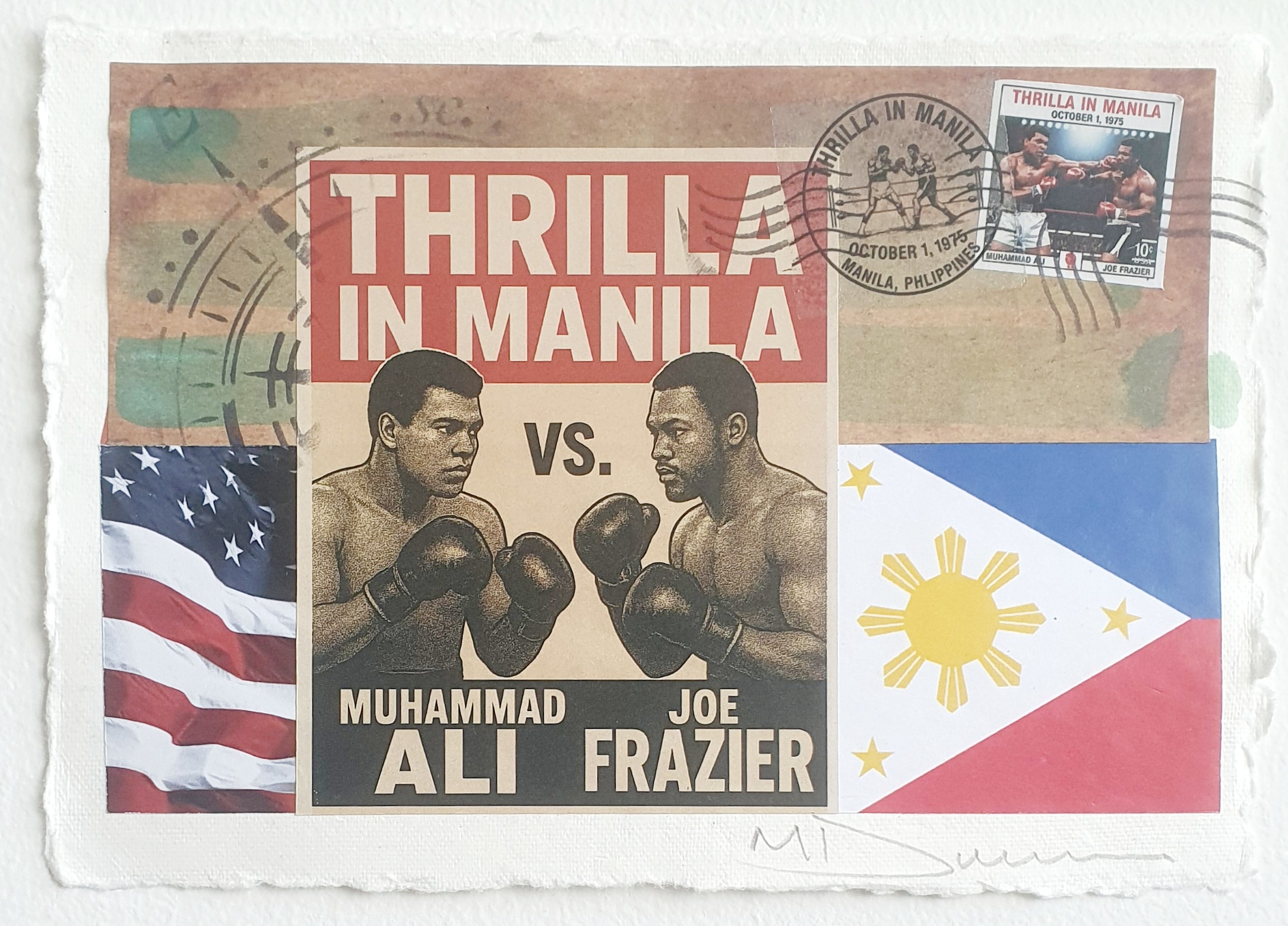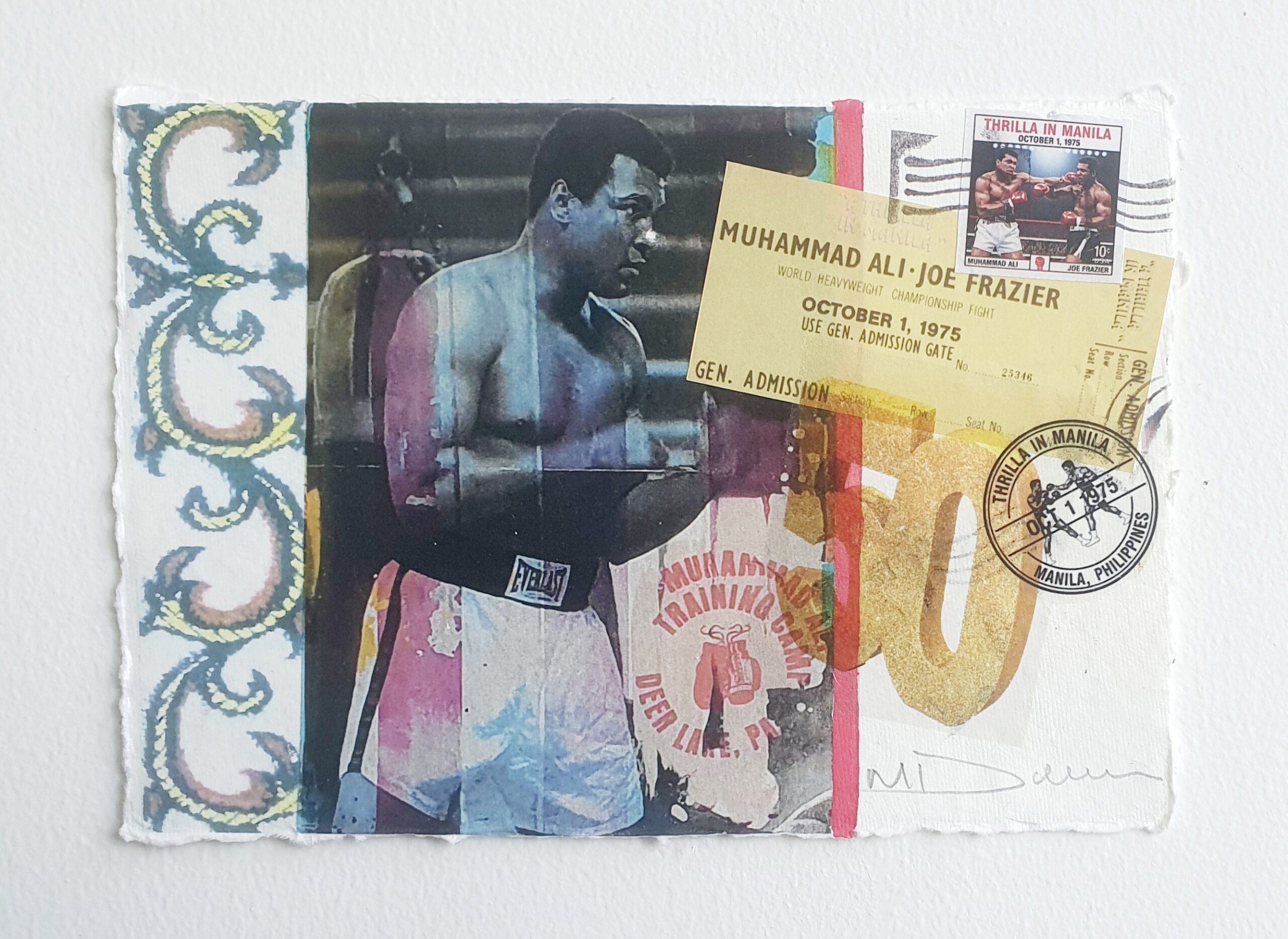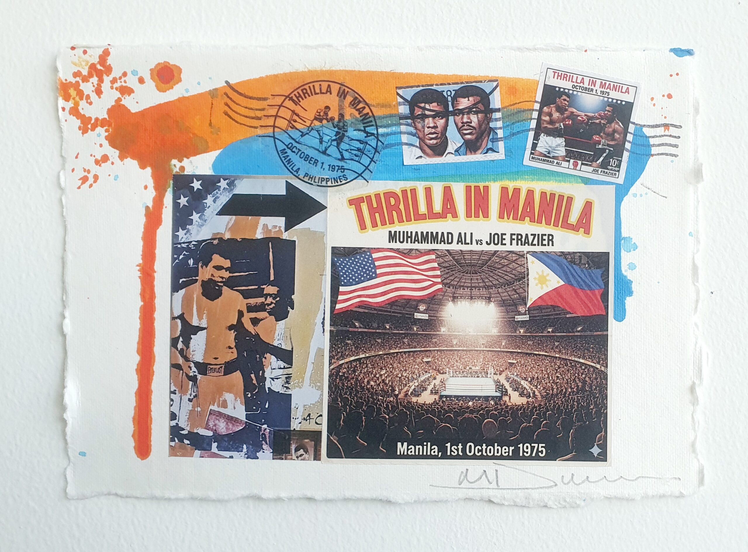 To mark the 50th anniversary of the legendary Thrilla in Manila, Dickens has created a special series of intimate mixed media artworks. Each piece is original and one-of-a-kind.